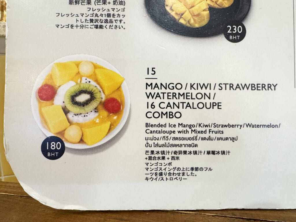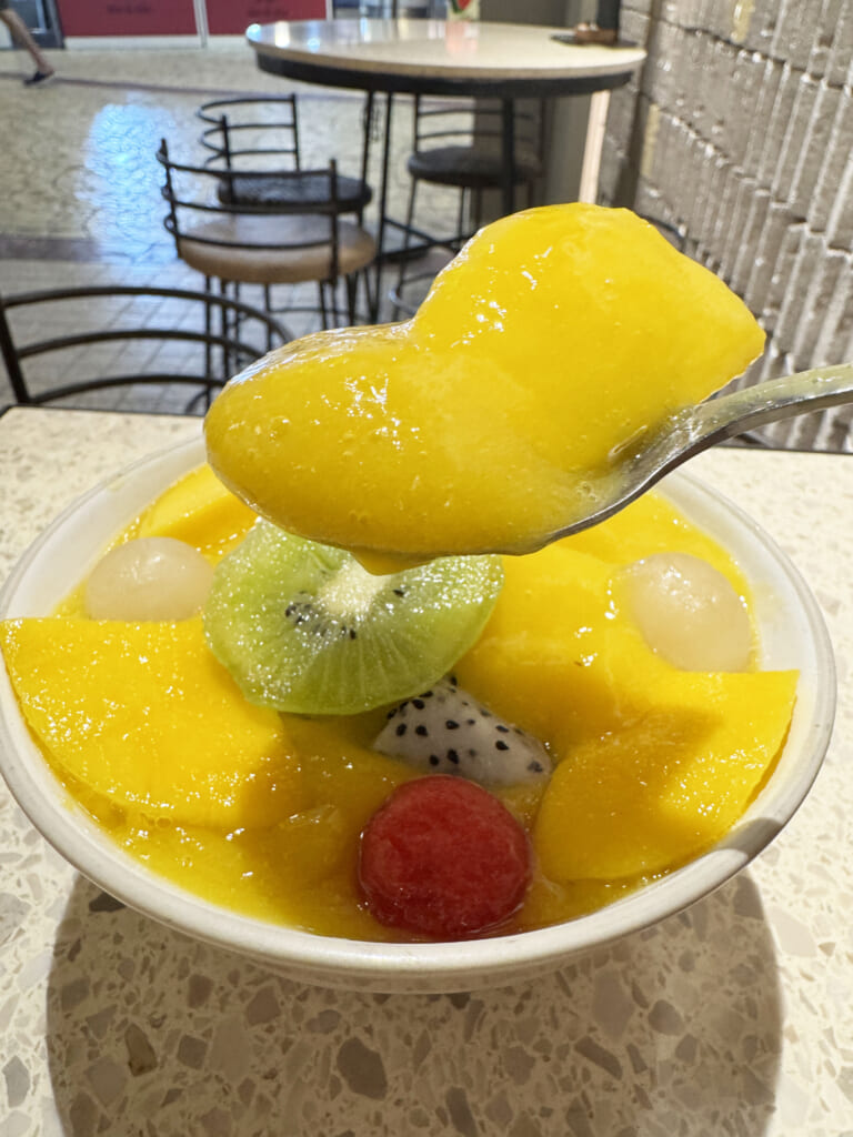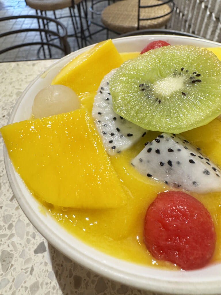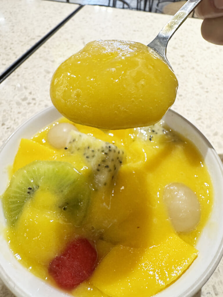 たとえば、筆者がオススメなのは「16CANTALOUPE COMBO」です。これあらゆる状態のマンゴーを使用しているのです。マンゴー、マンゴーソース、マンゴーアイス! そこにマンゴーのおいしさを引き立てるフルーツとしてキウイ、いちご、スイカ、ドラゴンフルーツなどが入っています。