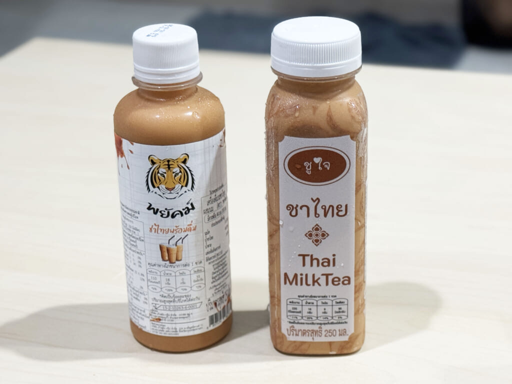 かつては、タイ式ミルクティーは屋台や茶屋や飲食店で飲むものでしたが、最近はコンビニでも定番化しており、紙パックやペットボトルの飲料として絶大な支持を得ています。複数のブランドから販売されているので、飲み比べや選ぶ楽しさもあります。
