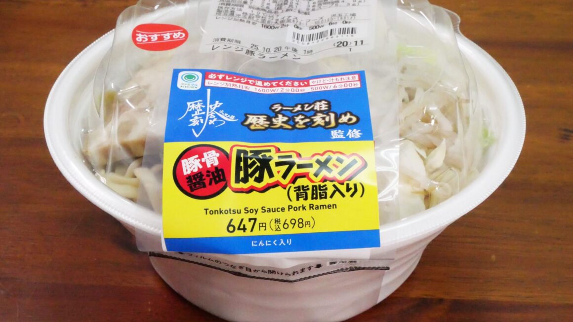 開封して、電子レンジで温めるだけで食べられる。そっそく加熱して開封してみた。具はニンニクやモヤシ、チャーシュー、卵黄など。特に卵黄はビジュアル的なインパクト大。麺の太さもかなりのもの。
