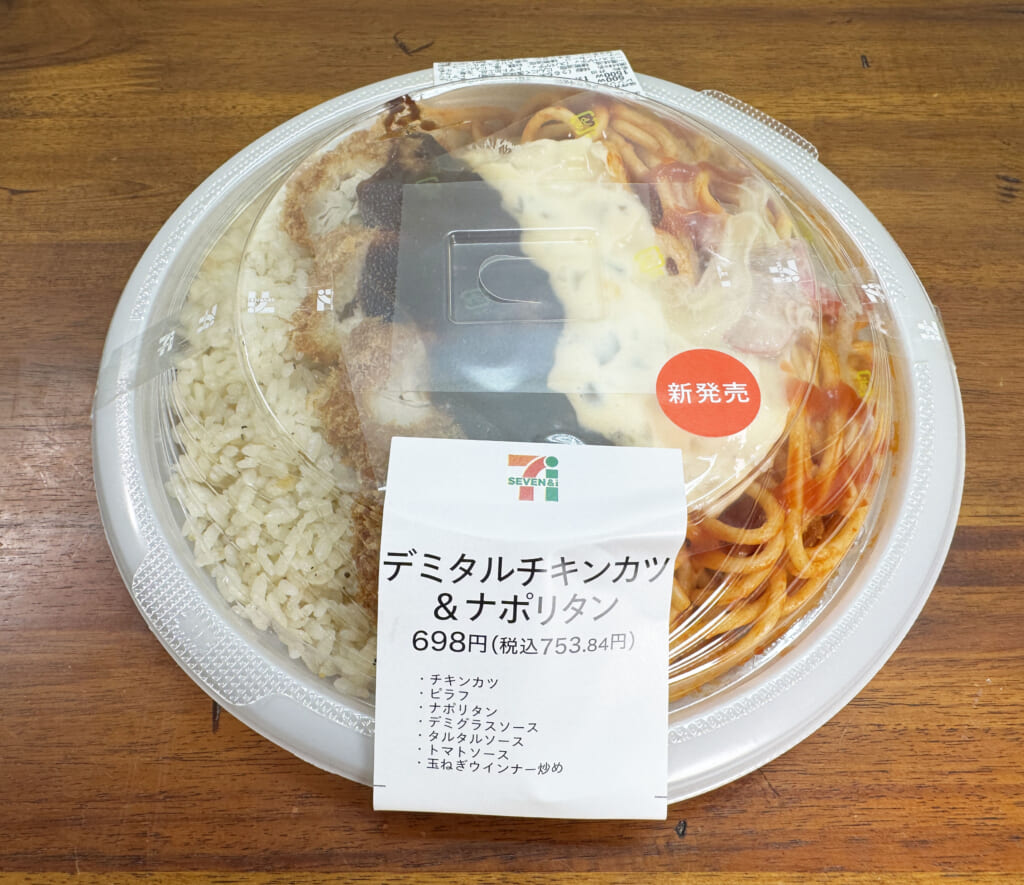 もしそんなシチュエーションになってしまった場合、ベストなコンビニグルメがある。それがセブンイレブンの「デミタルチキンカツ&ナポリタン」(税込753.84円)だ。なんと、これひとつで、チキンカツと、ナポリタンと、ピラフ、すべてを同時に堪能できるのだ。