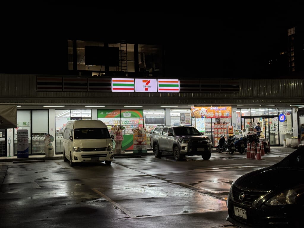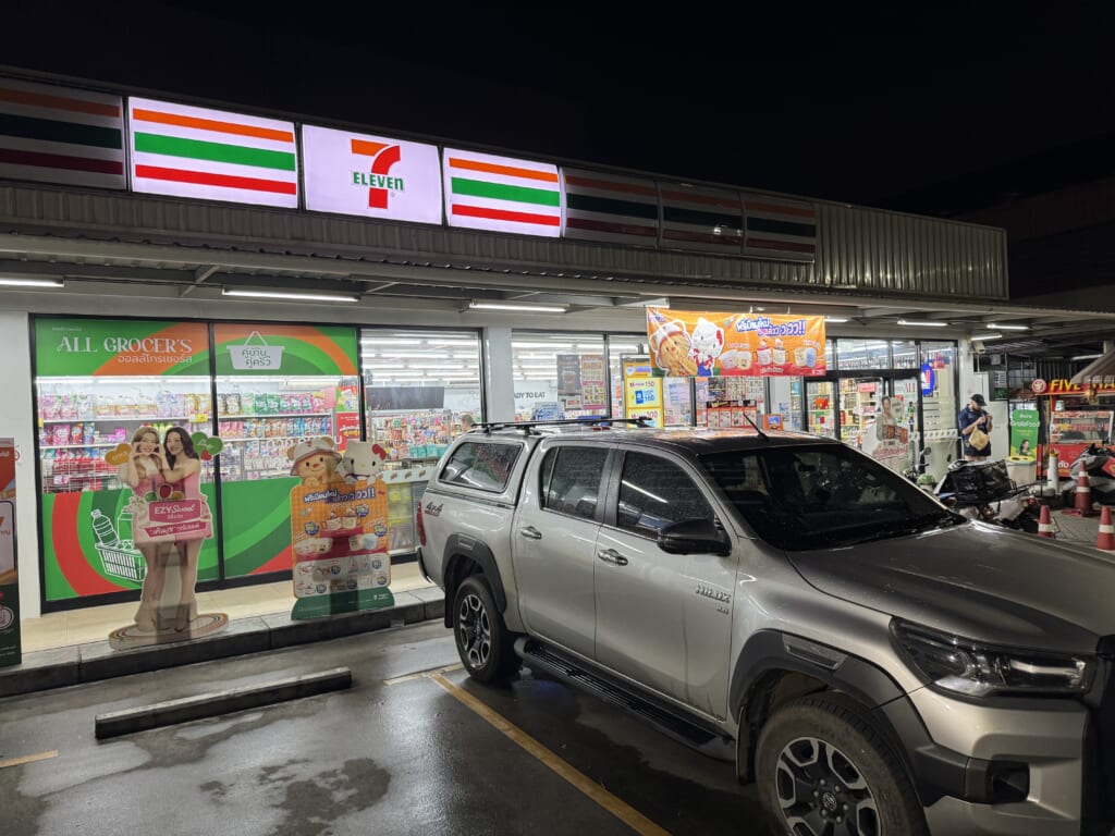 タイの首都バンコクのセブンイレブンに行ってみました。夜中でも営業しているコンビニって、なんだかホッとしますよね。日本でもタイでも、深夜のコンビニはホッとします。……とか思いながら入店。