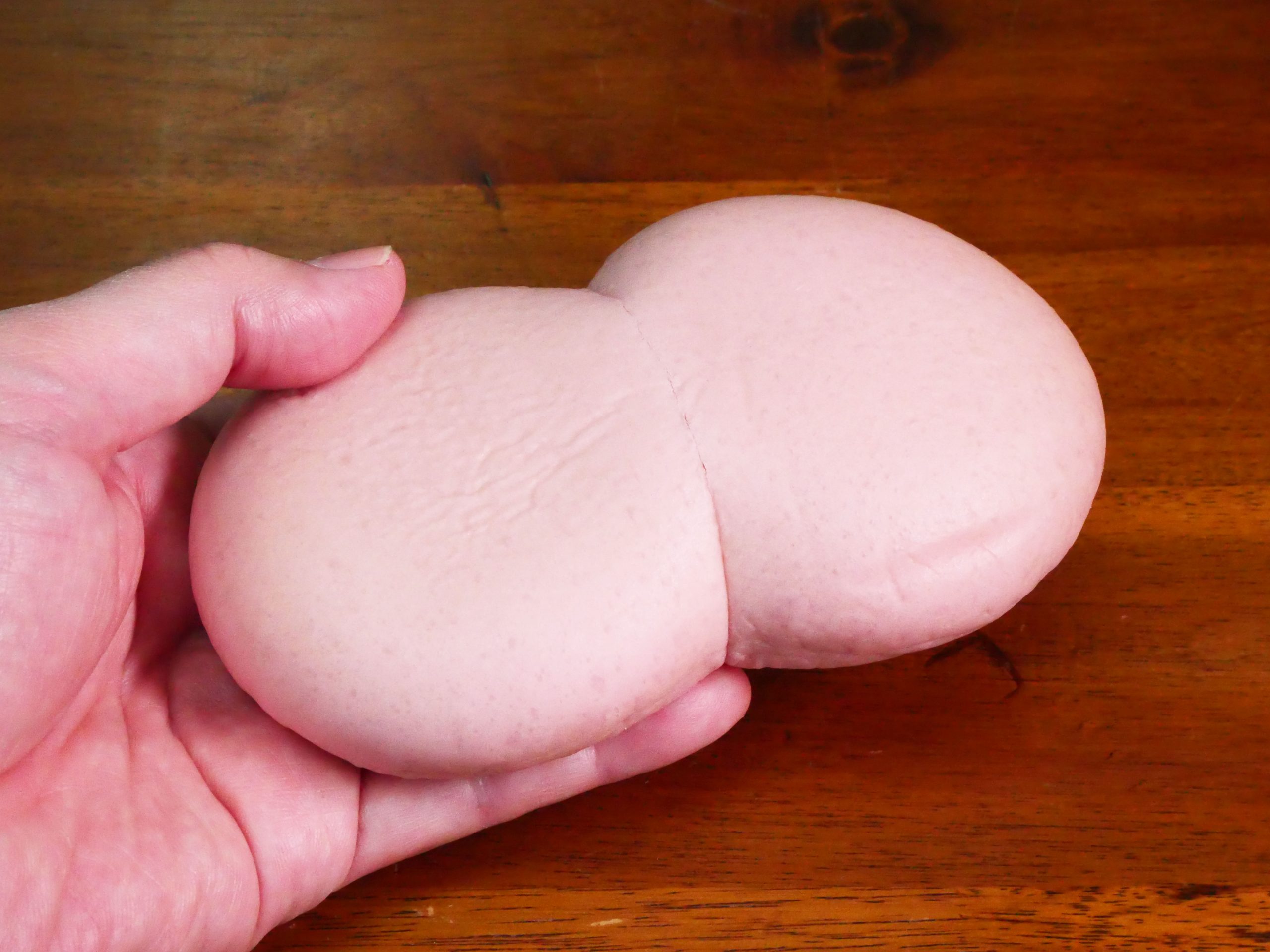 純粋ないちごジャムを楽しみつつ、いちごジャムにホイップクリームをあわせた味も楽しめる。半分に割れば、完全に別物のジャムパン2個が誕生する感じです。味? いうまでもなく良いです。パン生地がいちご色な点もワクワクしますよ。